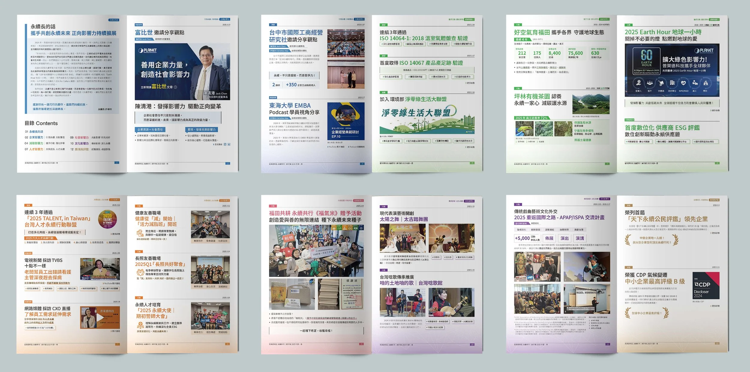 金可國際 | 2024 ESG永續報告書設計 金可國際 | 2023 ESG永續報告書設計 普萊德科技 | 2025 永續季刊 內頁編排設計 普萊德科技|2024 ESG永續報告書 內頁編排設計 東海大學|企業永續發展中心 廻鄉驛站|品牌設計 旭清保險經紀人|品牌設計 標準字設計 LINE貼圖